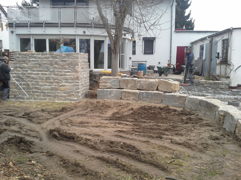 -Gartengestaltung, d.h. Sitzplätze, Hochbete, Sichtschutz (Mauern, Zäune, aus Stein oder Holz), usw.